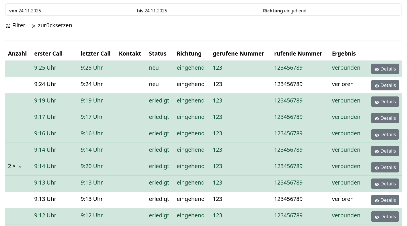 Anrufe werden automatisch den richtigen Kontakten zugeordnet. Ob eingehend, ausgehend oder verpasst – alles ist nachvollziehbar und auswertbar.