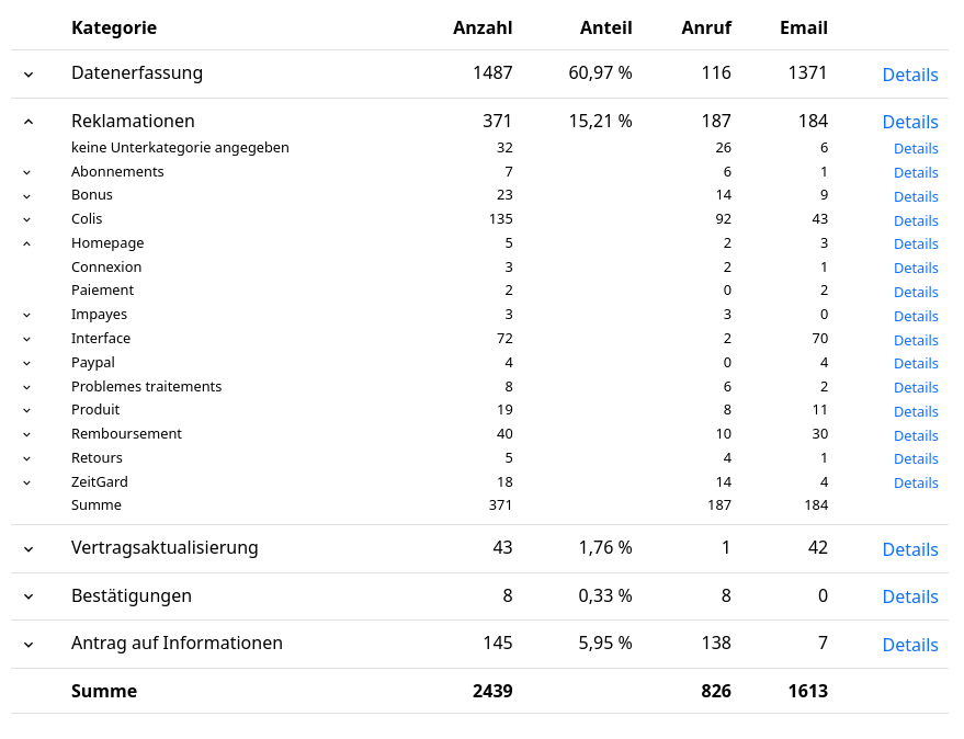 - Filterung nach Zeitraum, Kanal oder Mitarbeiter